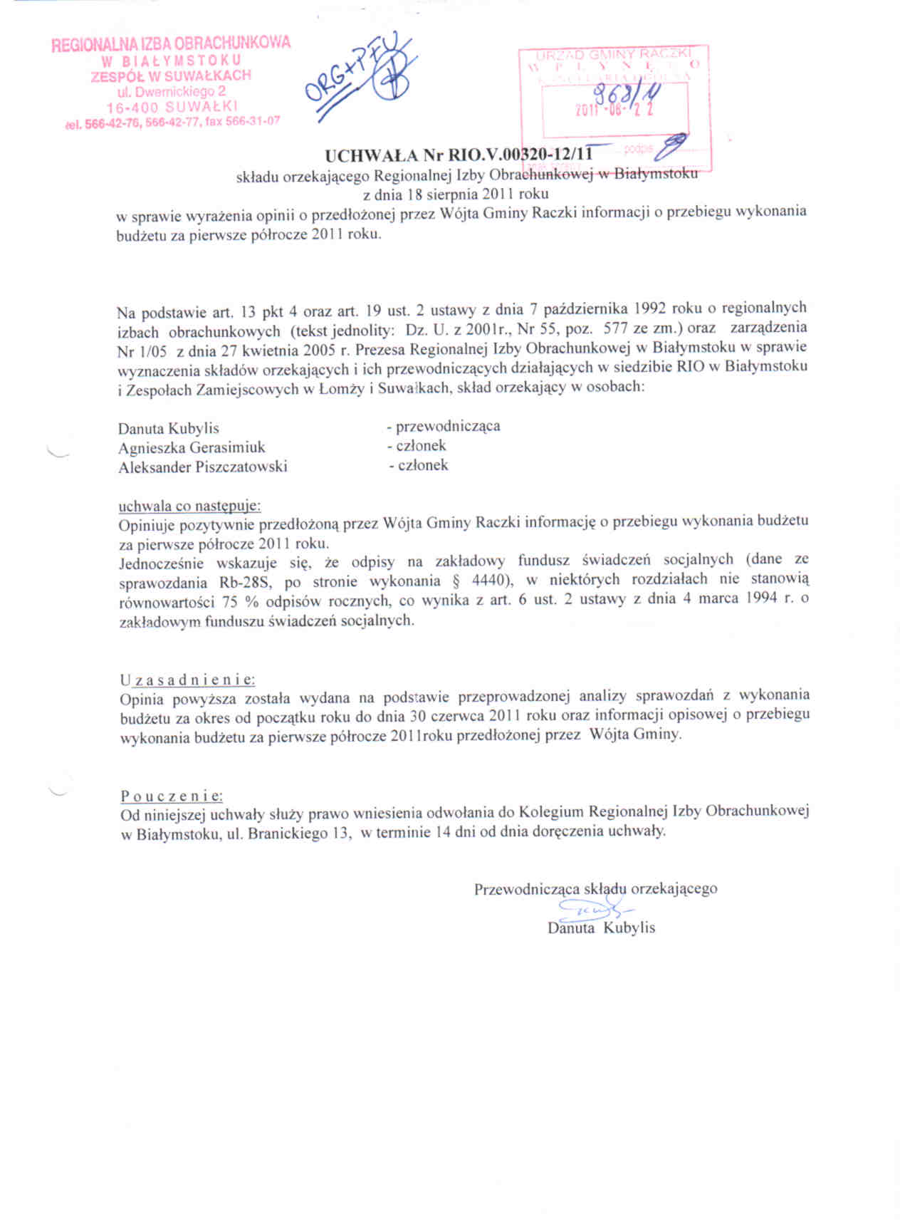 Załącznik Nr 11. – Uchwała Nr RIO.V-00322-7/11