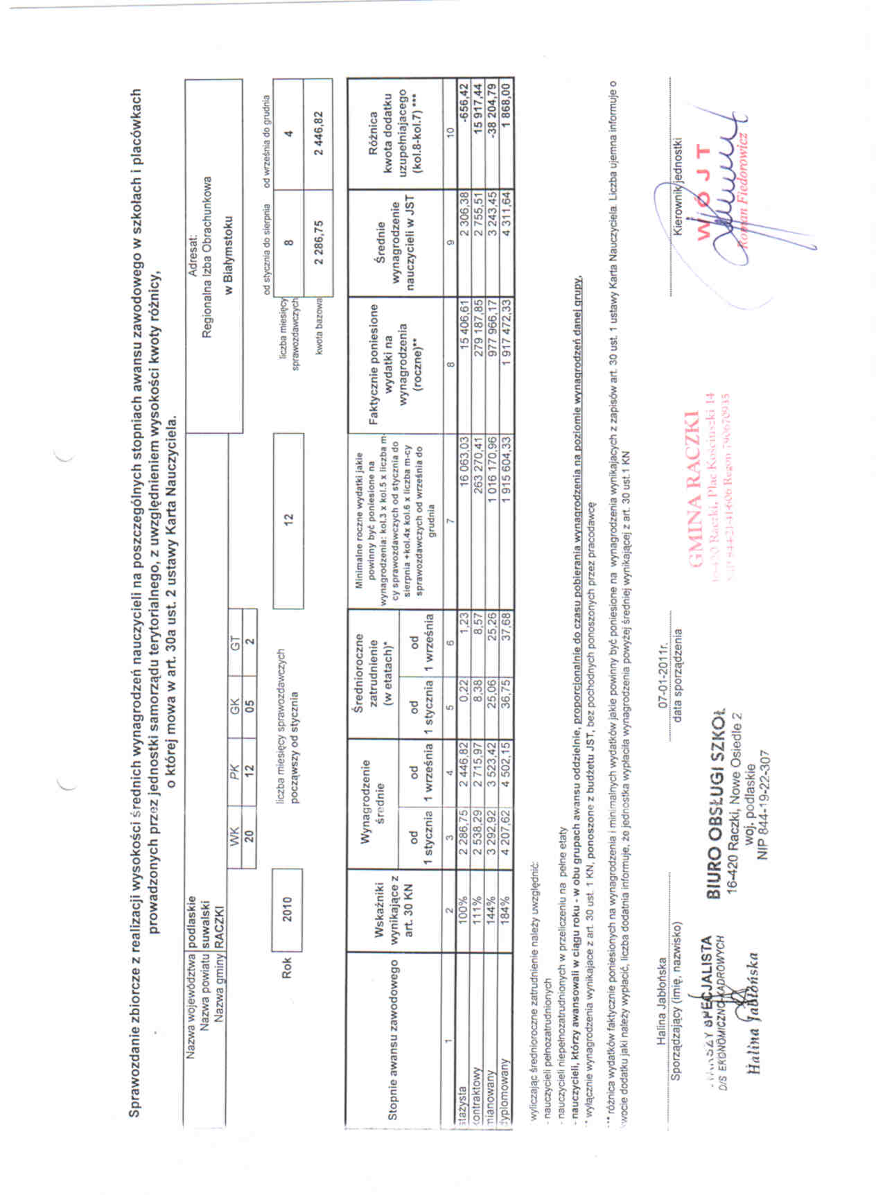 Załącznik Nr 4. - Informacja o stanie realizacji zadań oświatowych w Gminie Raczki w roku szkolnym 2010-2011
