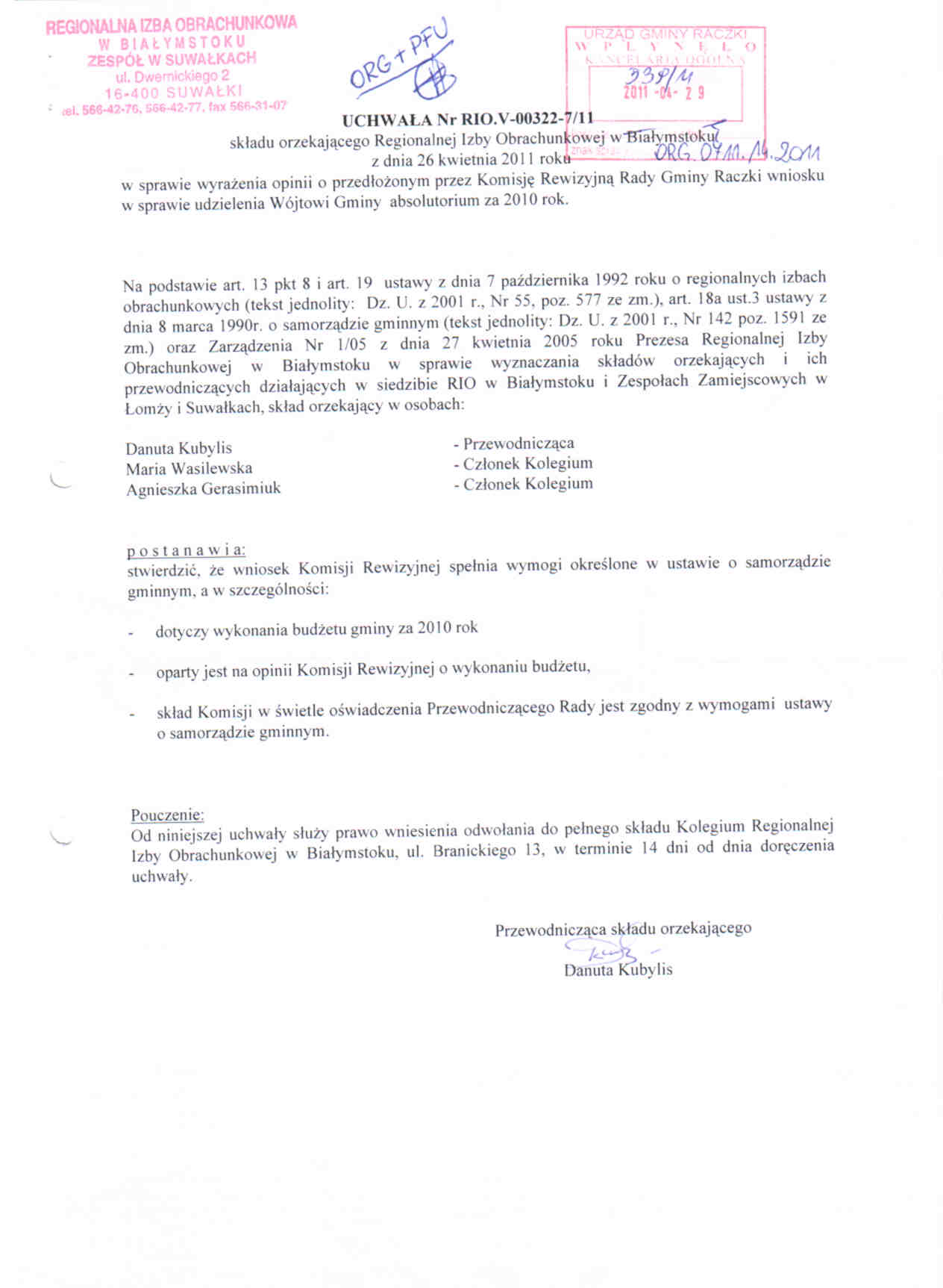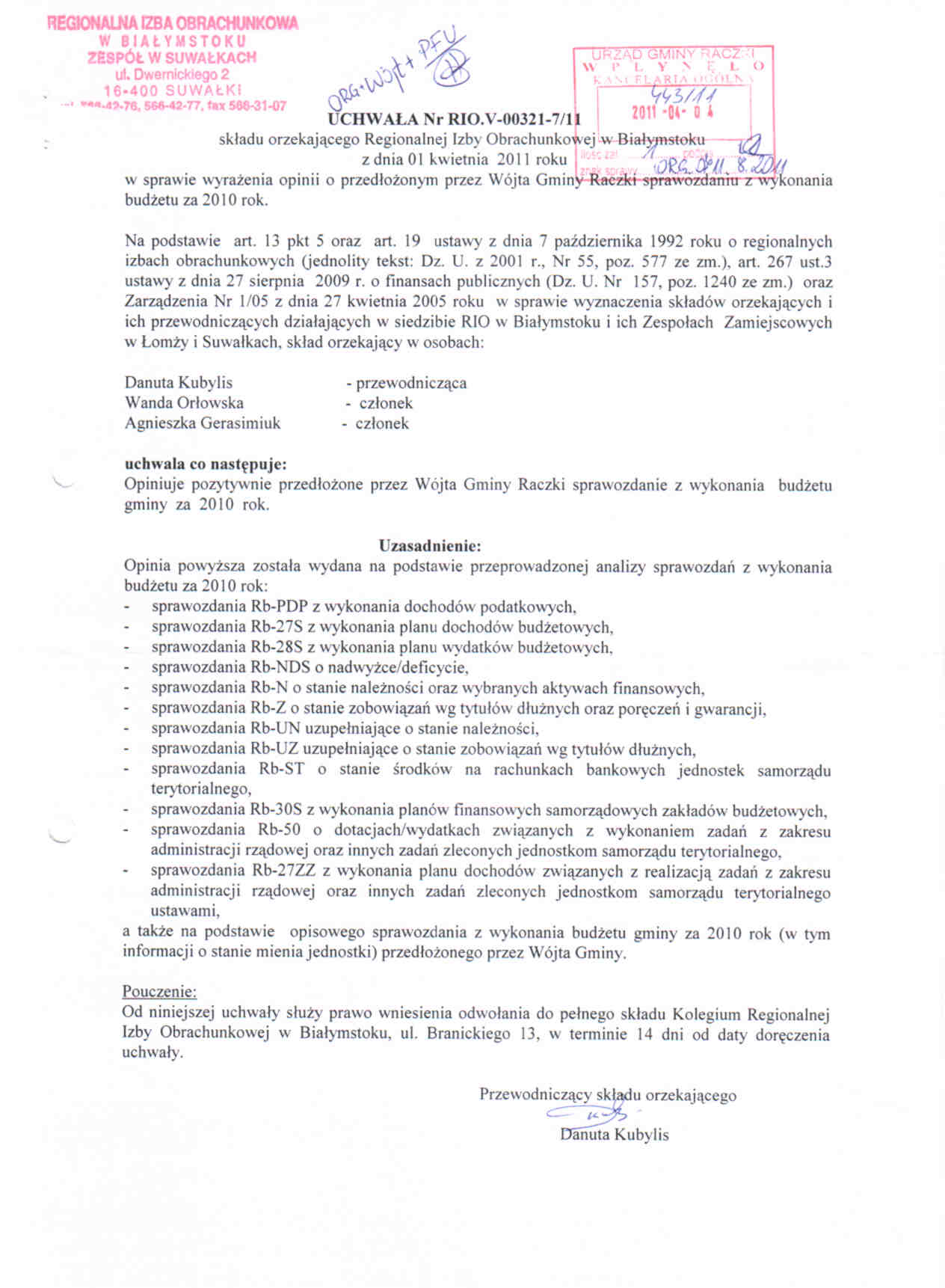 Załącznik Nr 10. – Uchwała Nr RIO.V.00310-8/11